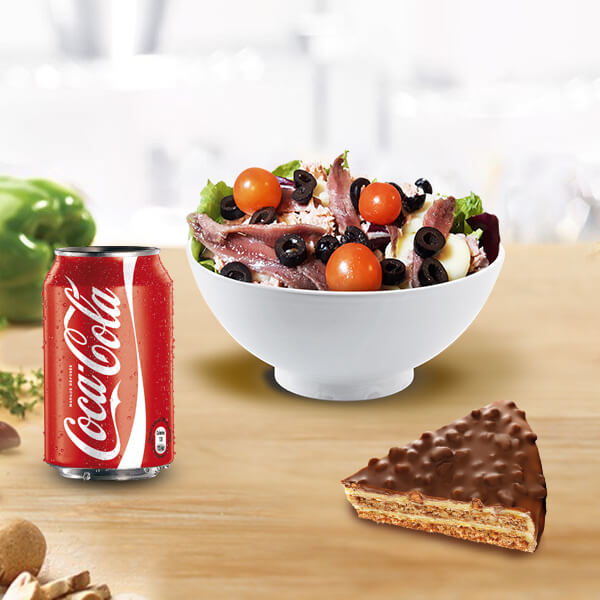 1 Salade au choix + 1 Dessert (sauf glace) + 1 boisson 33 cl